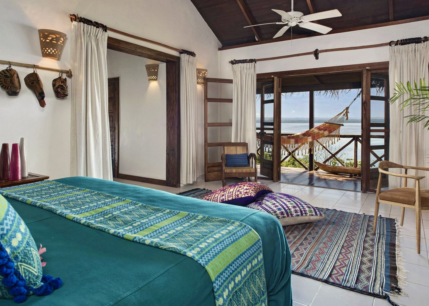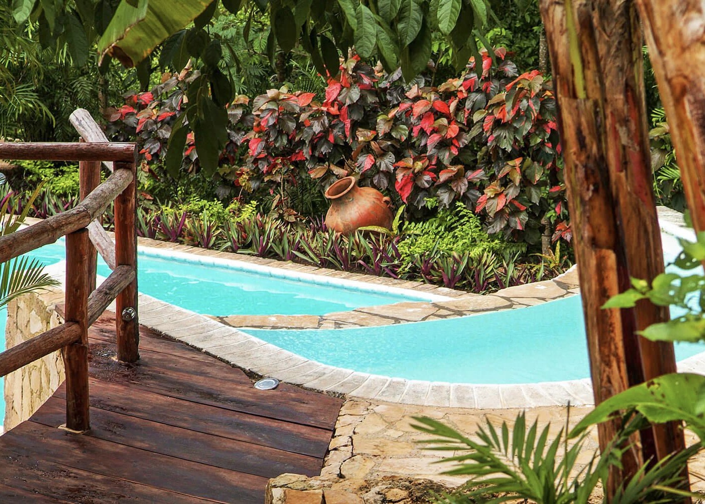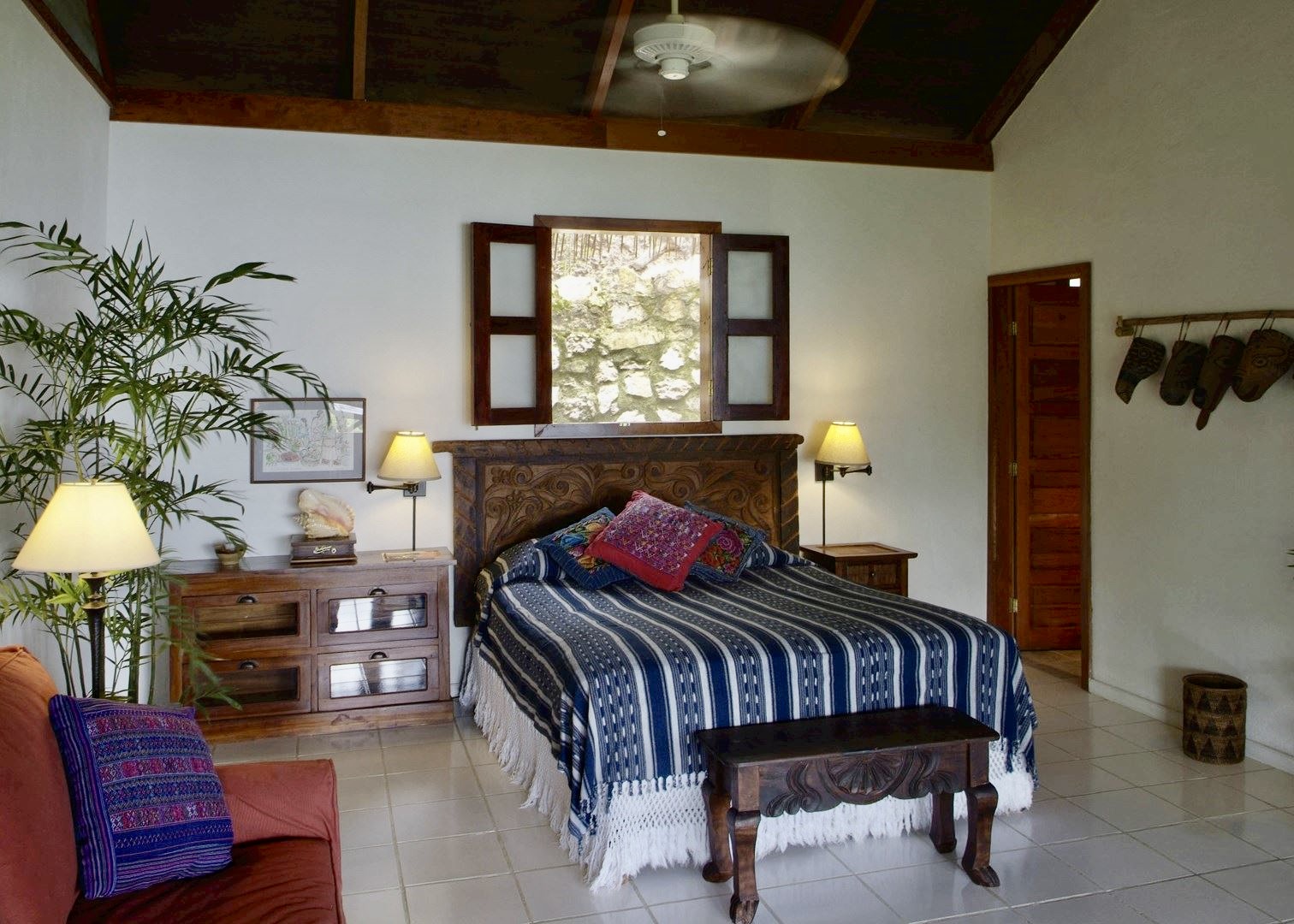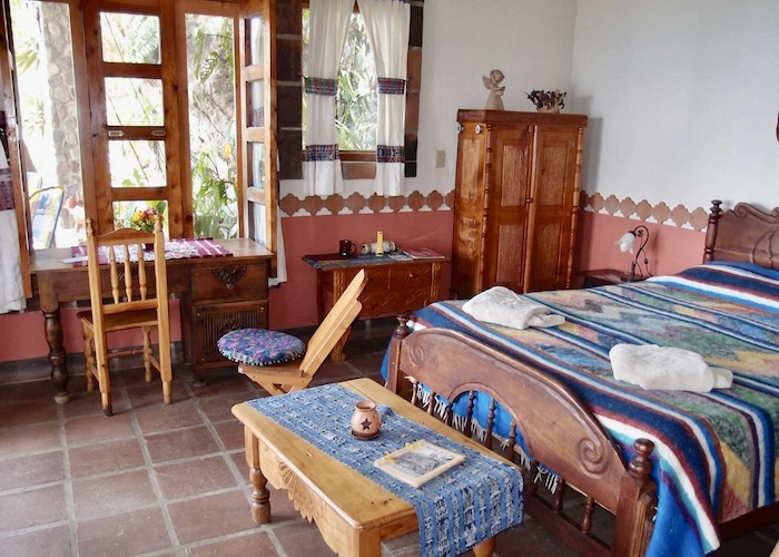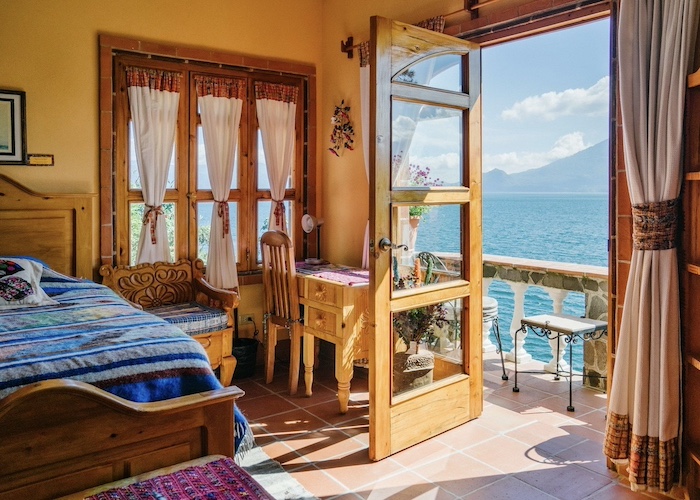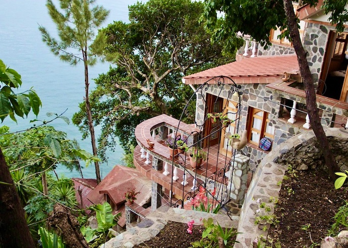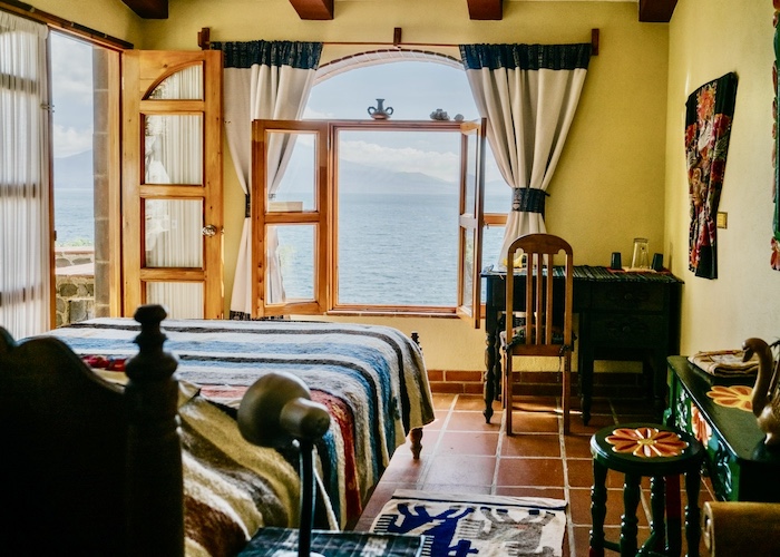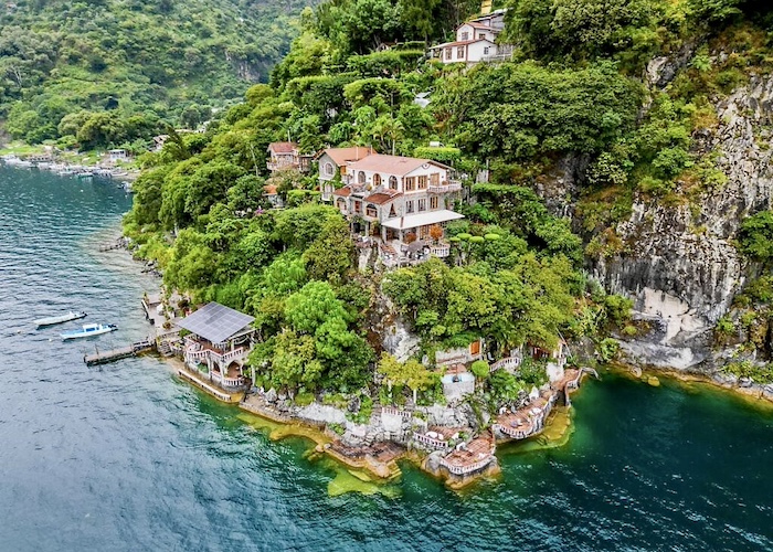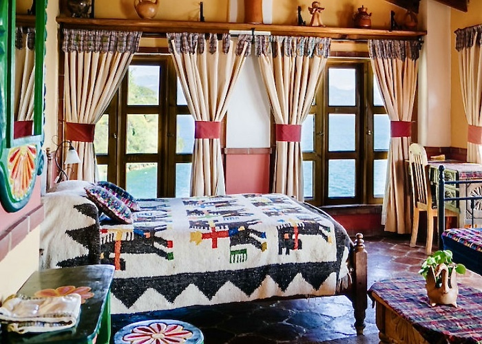 Perched on cliffs above Lake Atitlán, Casa del Mundo offers breathtaking views of the lake and surrounding volcanoes. Each room is unique, connected by winding paths, stone terraces and Mayan warmth.